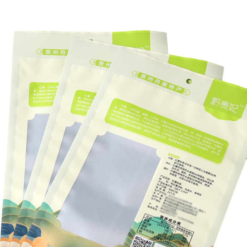 High-quality 3-seal flexible packaging bag with heat-sealed top and sides—ideal for food products like red potato noodles, dried vegetables, and snacks. Moisture-resistant, printable, and compatible with automated filling lines.