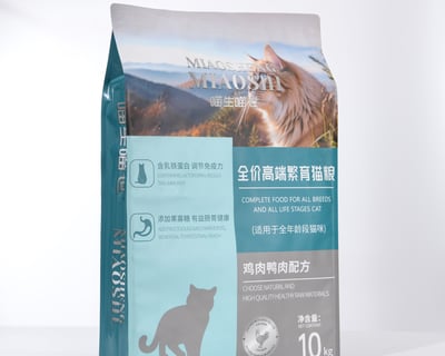Custom Printed 4-Seal Bag Stand-Up design for Cat Food, Dog Food, and Pet Nutrition Products
