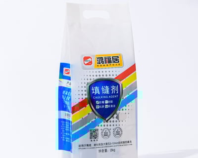 High-strength 4-seal flexible packaging bag with top handle—ideal for construction materials like grout, sealant, and adhesive. Moisture-resistant, printable, and perfect for retail display and industrial use