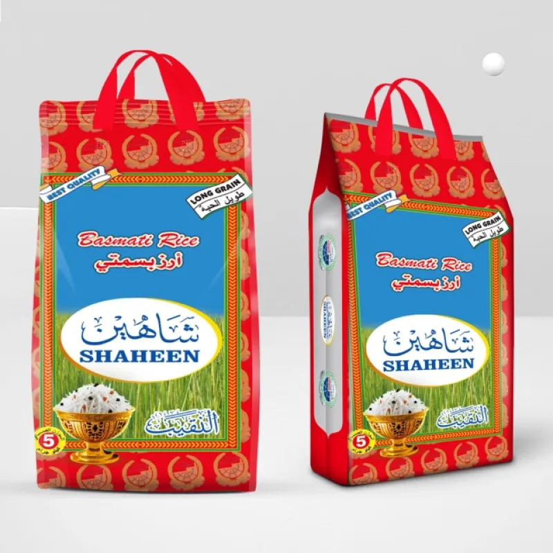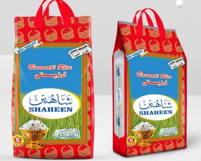 Customizable Stand - up Woven Rice Sacks with Handles, Adjustable 5 - 40kg Net Weight, Square - Bottom Design, Metallized Surface with Gold Accent Detailing, Engineered for Basmati Rice Brands to Elevate Brand Identity & Product Differentiation