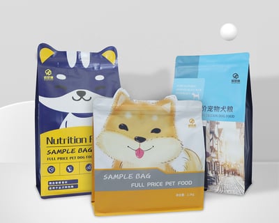 Finished product packaging for pet food manufacturers, split packaging for pet supply stores, household storage for pet owners, and e-commerce pet food shipping. Also suitable for packaging pet snacks, nutritional supplements, and small animal feed.