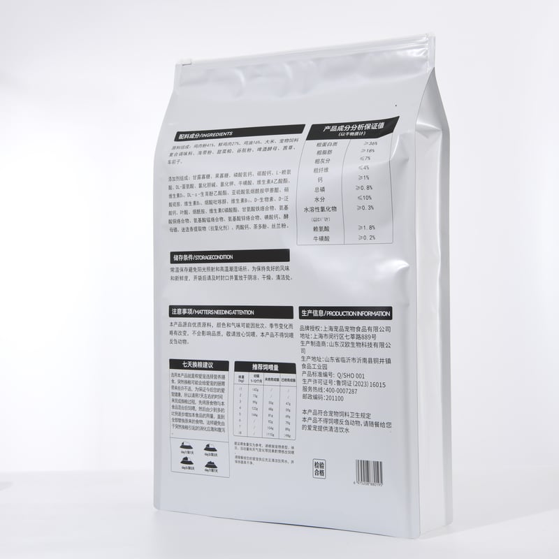 The 4-seal bag is the preferred packaging format for premium cat food and animal nutrition products. Its four-side sealed structure provides complete protection against moisture, oxygen, and pests—critical for maintaining the quality and safety of dry pet food.