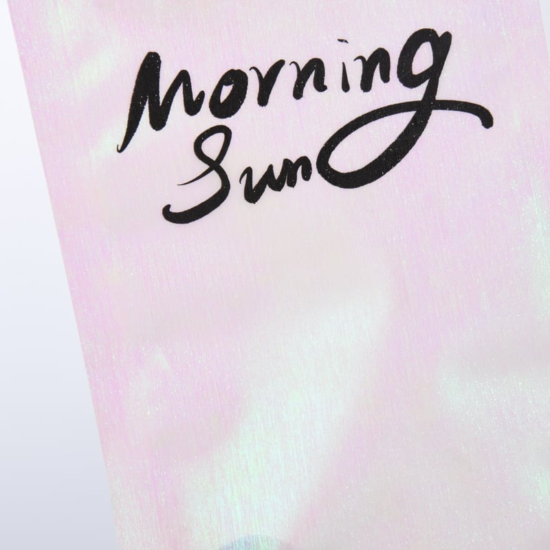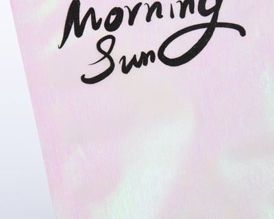The soft pink gradient adds warmth and femininity, while the minimalist hand-written font ("Morning Sun") enhances emotional connection. The self-standing structure ensures it stands out on shelves without needing extra support.
